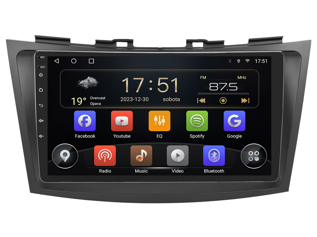 S autorádiom Isudar T72-IEV63 QLED 2DIN pre Suzuki Swift máte svet hudby, zábavy a informácií doslova na dosah ruky. Hlavnou prednosťou je nepochybne prehľadná 9-palcová obrazovka QLED s neuveriteľným rozlíšením 1280 x 720. Možno na nej sledovať videá a prezerať fotografie s podporou aplikácií Android. O špičkový výkon a plynulý chod aplikácií sa stará 8-jadrový procesor v spojení so 4 GB operačnej pamäte. Náročný poslucháč ocení funkciu DSP alebo Digital Signal Processor, ktorá mnohonásobne zvyšuje kvalitu reprodukcie. Pomocou 4G modulu sa z vášho autorádia stane smartfón, z ktorého môžete hravo posielať SMS správy, využívať online GPS navigáciu s aktuálnou dopravnou situáciou alebo využívať ďalšie cenné funkcie.Váš mobilný telefón zostane navždy vo vašom vrecku vďaka technológiám CarPlay a Android Auto. Vďaka operačnému systému Android 12 budete mať v aute kompletné multimediálne centrum plné funkcií a aplikácií. Pohľad z parkovacej kamery vám umožní bezpečne a nerušene cúvať. Autorádio ponúka výber z rôznych jazykov, medzi ktorými nechýba preklad základnej časti systému do češtiny.