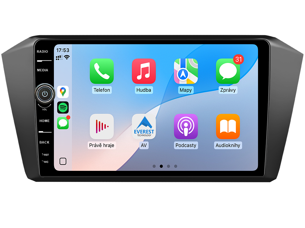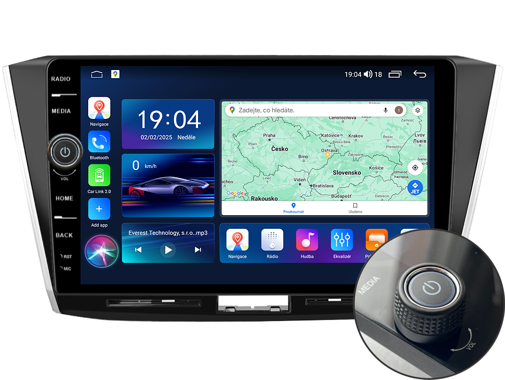Autorádio Everest EVE602DIN pre Volkswagen Passat B8 stanovuje nové štandardy vo svete multimediálnych technológií. Na prvý pohľad zaujme 10,1-palcovou obrazovkou QLED s neuveriteľným rozlíšením 1280 x 800. Možno na ňom sledovať videá a prezerať fotografie s podporou aplikácií pre systém Android. O špičkový výkon a plynulý chod aplikácií sa postará stabilný softvér s 8-jadrovým procesorom v spolupráci so 6 GB RAM. Náročný poslucháč ocení funkciu DSP alebo Digital Signal Processor, ktorá mnohonásobne zvyšuje kvalitu reprodukcie. Pomocou 4G modulu sa z vášho autorádia stane smartfón, z ktorého môžete hravo posielať SMS správy, využívať online GPS navigáciu s aktuálnou dopravnou situáciou alebo využívať ďalšie cenné funkcie. Mobilný telefón vám navždy zostane vo vrecku vďaka bezdrôtovej funkcii CarPlay a Android Auto. Vďaka operačnému systému Android 13 budete mať vo svojom vozidle kompletné multimediálne centrum plné funkcií a aplikácií. Pohľad z parkovacej kamery vám umožní bezpečne a nerušene cúvať. Autorádio ponúka na výber z rôznych jazykov, medzi ktoré patrí aj preklad základnej časti systému do češtiny.