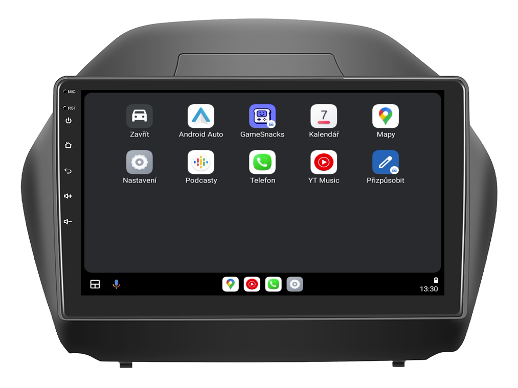 Autorádio s Android 13 pro Hyundai IX35, CarPlay, AndroidAuto, bluetooth handsfree s GPS modulem, navigací, DAB a LCD dotykovou obrazovkou před a po evtech.cz