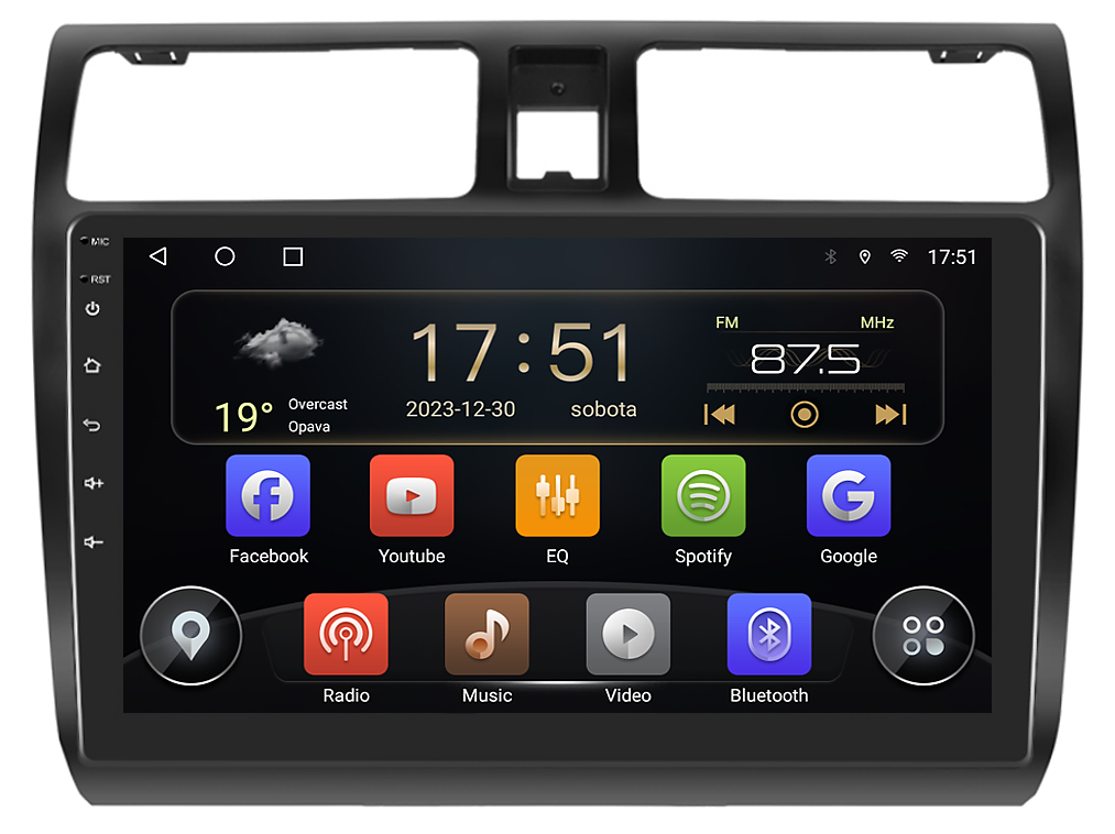 2DIN autorádiem Isudar T72-IEV73 QLED pro Suzuki Swift máte svět hudby, zábavy a informací doslova na dosah ruky. Hlavním rysem je bezesporu přehledná 10,1 palcová QLED obrazovka s neuvěřitelným rozlišením 1280 x 720. Lze na ní sledovat video i prohlížet fotografie s podporou Android aplikacemi. O špičkový výkon a plynulý běh aplikací se stará 8-jádrový procesor ve spolupráci se 8 GB RAM. Náročný posluchač jistě ocení funkci DSP neboli digitální signálový procesor, který násobně zvyšuje kvalitu reprodukce. Za pomocí 4G modulu se z Vašeho autorádia stane smartphone, ze kterého můžete hravě odesílat SMS zprávy, využívat online GPS navigaci s aktuální dopravní situací či využívat další cenné funkce. Váš mobilní telefon již zůstane navždy v kapse díky funkci CarPlay a Android Auto. Díky operačnímu systému Android 12 budete mít ve svém automobilu kompletní multimediální centrum přeplněné funkcemi a aplikacemi. Pohled z parkovací kamery Vám umožní bezpečné a ničím nerušené couvání. Autorádio nabízí možnost výběru z různých jazyků, které obsahují přeloženou základní část systému do českého jazyka.