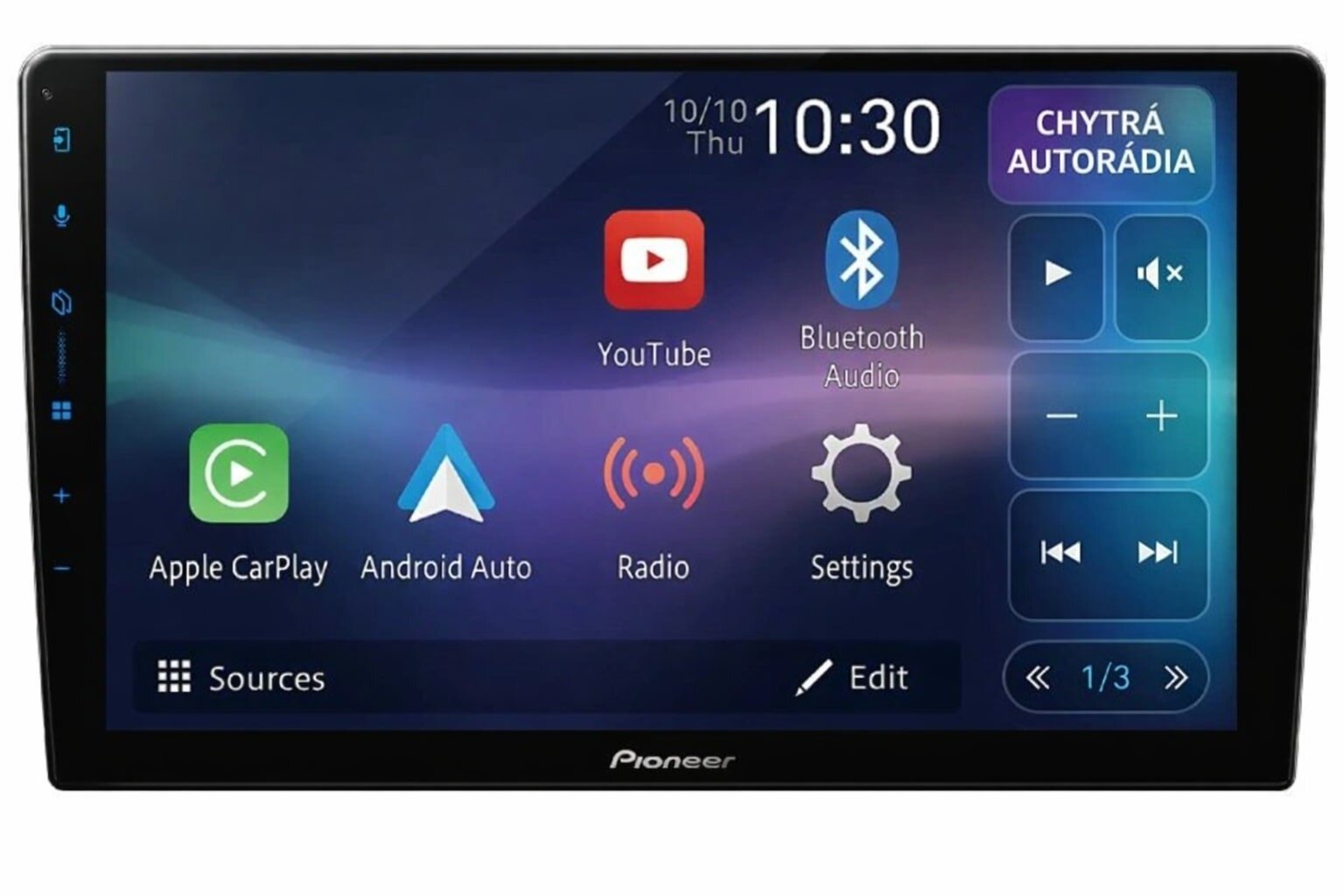 Autorádio Pioneer SPH-PF97BT s velkým 9" dotykovým displejem nabízí moderní výbavu včetně bezdrátového Apple CarPlay a Android Auto, Bluetooth handsfree, WebLink 3.0 a kvalitního DSP zvukového procesoru. Díky podpoře couvací kamery, jednoduchému ovládání a konstrukci PERFECT FIT, která umožňuje instalaci do různých typů vozidel, je ideální volbou pro každého, kdo chce komfort, bezpečnost a špičkový zvuk v jednom zařízení.