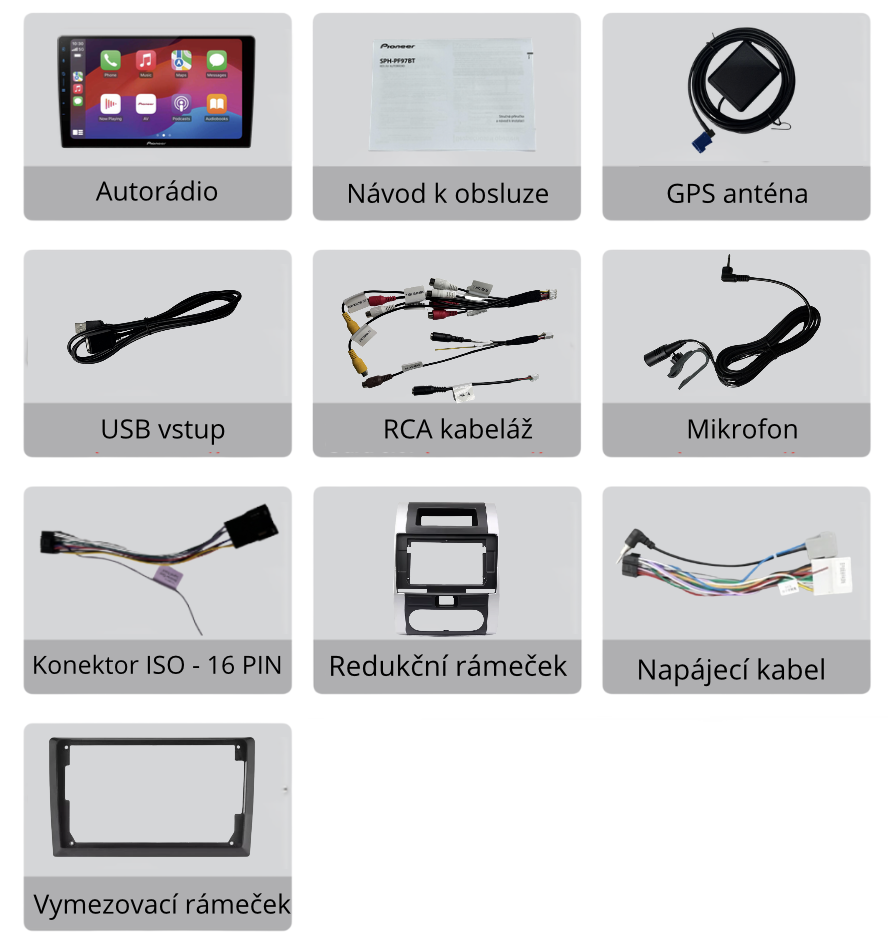 Autorádio Pioneer SPH-PF97BT s velkým 9" dotykovým displejem nabízí moderní výbavu včetně bezdrátového Apple CarPlay a Android Auto, Bluetooth handsfree, WebLink 3.0 a kvalitního DSP zvukového procesoru. Díky podpoře couvací kamery, jednoduchému ovládání a konstrukci PERFECT FIT, která umožňuje instalaci do různých typů vozidel, je ideální volbou pro každého, kdo chce komfort, bezpečnost a špičkový zvuk v jednom zařízení.