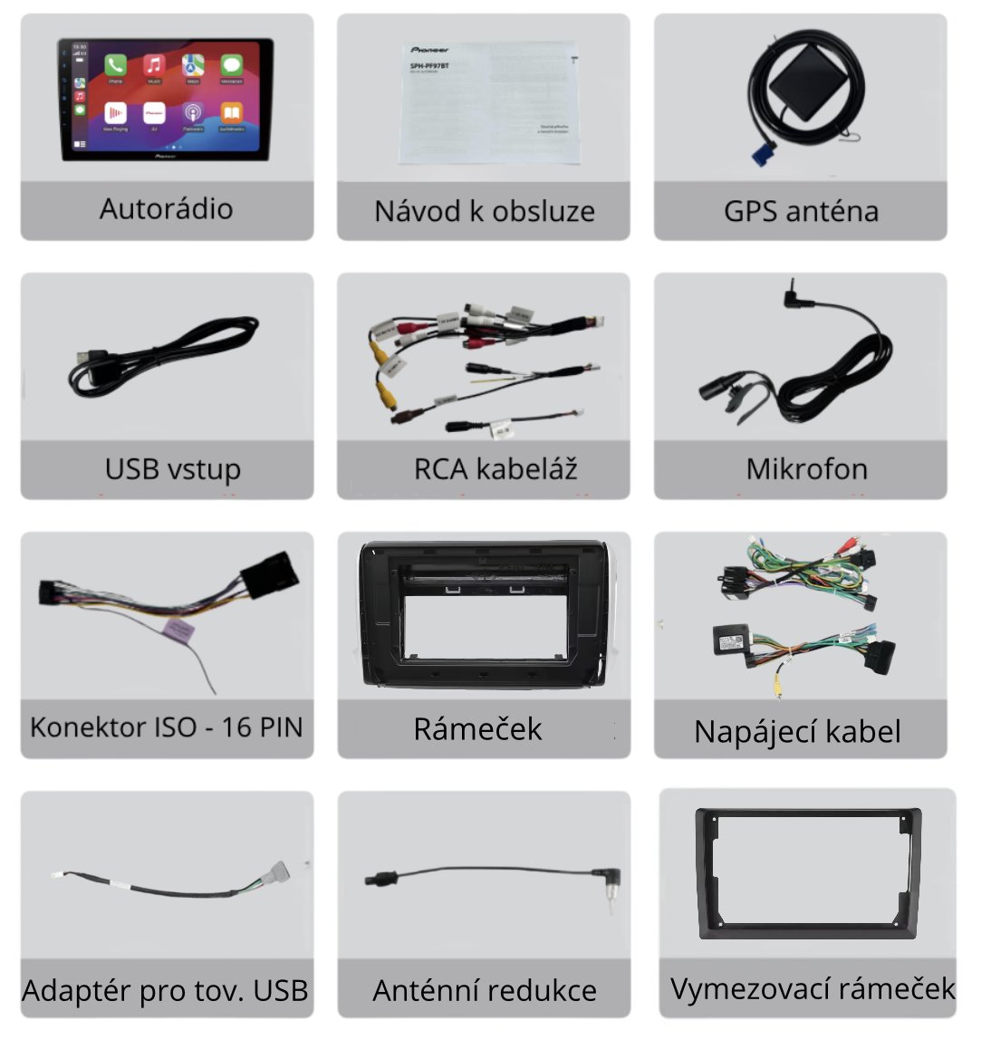Autorádio Pioneer SPH-PF97BT s velkým 9" dotykovým displejem nabízí moderní výbavu včetně bezdrátového Apple CarPlay a Android Auto, Bluetooth handsfree, WebLink 3.0 a kvalitního DSP zvukového procesoru. Díky podpoře couvací kamery, jednoduchému ovládání a konstrukci PERFECT FIT, která umožňuje instalaci do různých typů vozidel, je ideální volbou pro každého, kdo chce komfort, bezpečnost a špičkový zvuk v jednom zařízení.