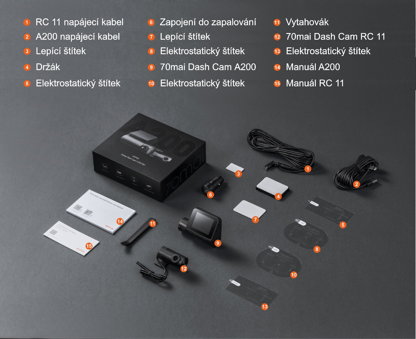 Kamera do auta 70mai Dash Cam A200 + Rear Cam RC11 set DC014